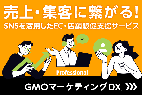GMOマーケティングDXは、GMOコマース社が提供するデジタルマーケティングサポートサービスです。ECサイトや実店舗の販促・集客において効果を発揮します。LINE公式アカウントやInstagramのアカウント開設、運用代行、さらには定例ミーティングなどの手厚いサポートを行っています。SNS運用のノウハウやリソースが不足している企業様でも、スムーズにデジタル販促を進めることが可能です。新規顧客の獲得はもちろん、リピート促進につながる施策を実現できます。